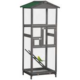 Cage à oiseaux volière grande taille 2 portes toit asphalte tiroir amovible bois gris