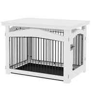 Optimisez l'espace de votre chien avec le meuble de cage pour chien PawHut, élégant et transformable en enclos. Comprend une table et un plateau en MDF et acier, assurant ventilation. Idéal pour chiens moyens dressés jusqu'à 20 kg et de moins de 50 cm.
