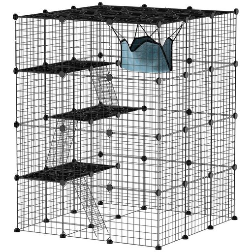 Cage chat intérieur - parc chat DIY - 4 niv. 5 portes hamac plateformes rampes - acier noir