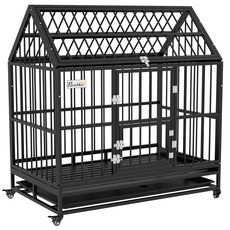 Optez pour la cage pour grands chiens PawHut, faite en acier robuste avec toit pointu pour plus d'espace. Inclut un plateau amovible pour un nettoyage facile, assurant un lieu propre et accueillant. Parfaite combinaison de durabilité, confort et praticité, elle bénéficie à la fois aux maîtres et aux