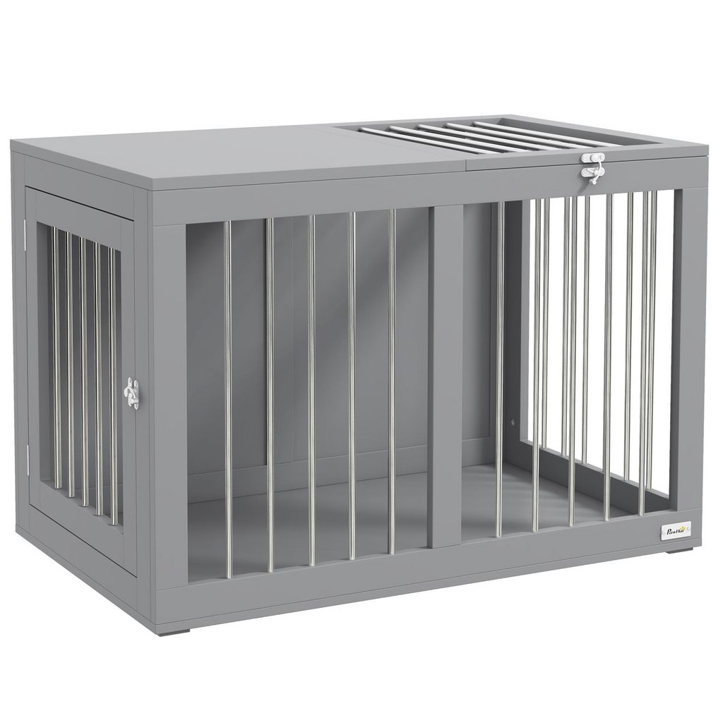 Cage chien intérieure niche pour chien 2 portes verrouillables 80 x 50 x 56,5 cm gris