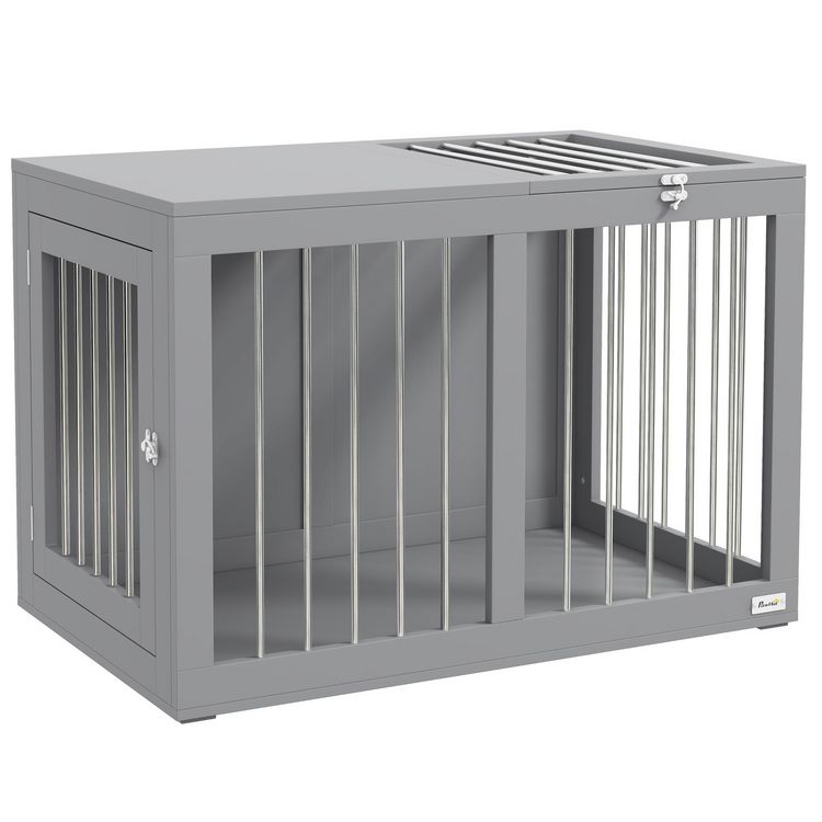 - Fabriquée en acier et en MDF, cette cage de chiens ajoute plus de stabilité