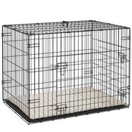 Cage chien pliable - 2 portes verrouillables, plateau amovible, coussin - 76 x 53 x 60 cm - beige noir