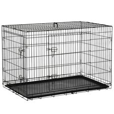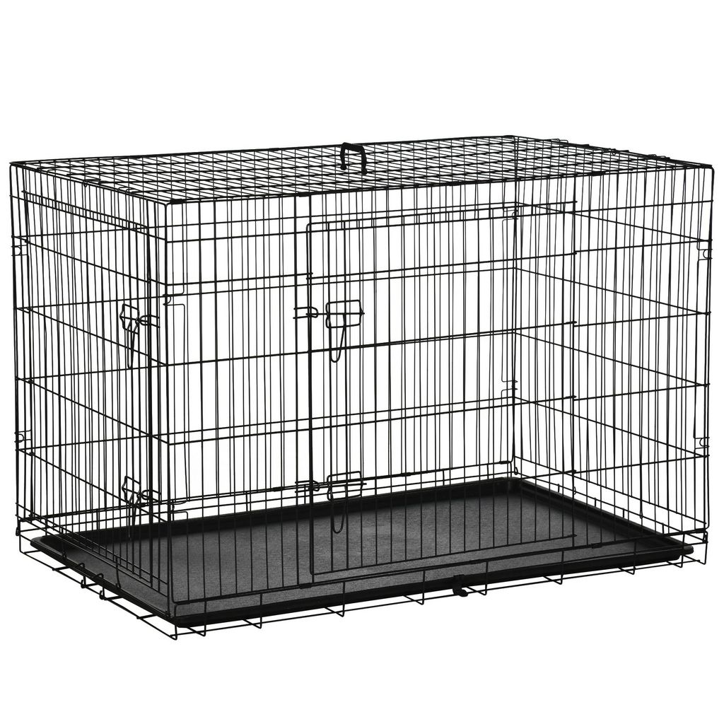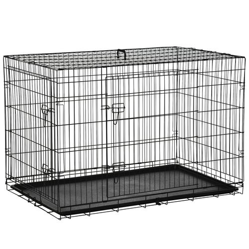 Cage de transport pour chien pliable - 2 portes verrouillables - plateau amovible - dim. 121L x 77l x 82H cm - acier ABS noir