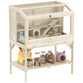 Cage hamster rongeur en bois - 2 niveaux - étagère - accessoires - 84 x 53 x 110 cm