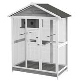 Cage oiseau grande taille - volière à oiseaux dim. 112 x 68 x 154 cm - nombreux accessoires - métal bois blanc gris noir