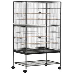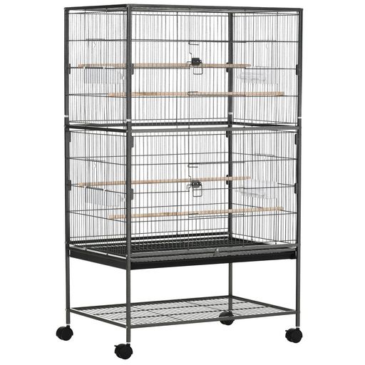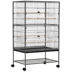 Découvrez cette cage à oiseaux PawHut, parfaite pour l'épanouissement des oiseaux, avec quatre perchoirs en bois et bacs en plastique pour faciliter l'alimentation. Accès aisé via deux portes frontales et quatre latérales pour vérifier eau et nourriture. Nettoyage simplifié par un plateau coulissant. Facile à déplacer grâce à ses quatre roues.