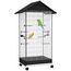 Cage oiseau sur roulettes - grande volière - plateau dejection amovible, mangeoires, perchoirs, portes - blanc noir