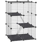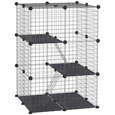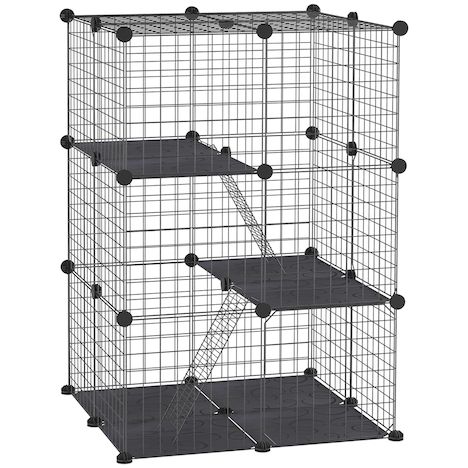 Cage parc enclos modulable rongeurs 3 niveaux 39 panneaux fil métallique PP noir