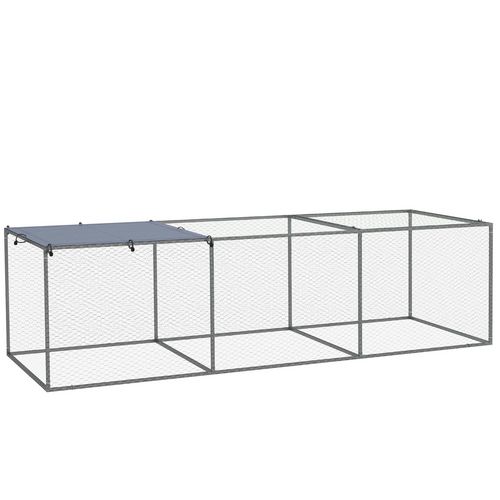 Cage parc enclos poulailler dim. 2,96L x 1l x 0,8H m - espace couvert - ouverture toit verrouillable - acier gris vert