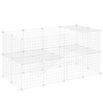 Cage parc enclos pour animaux domestiques L 146 x l 73 x H 73 cm modulable 2 niveaux 36 panneaux bords arrondis fil métallique blanc