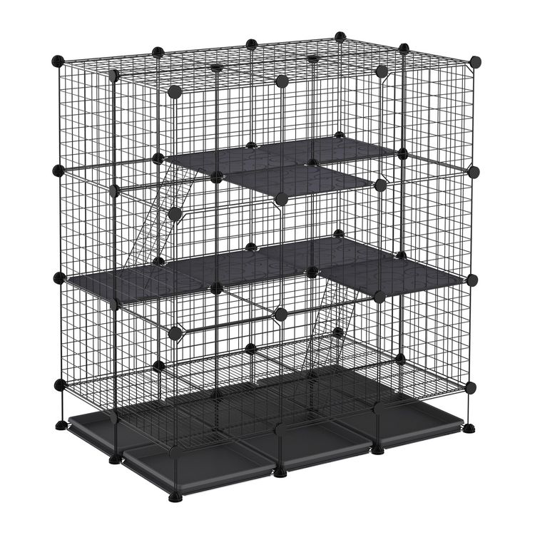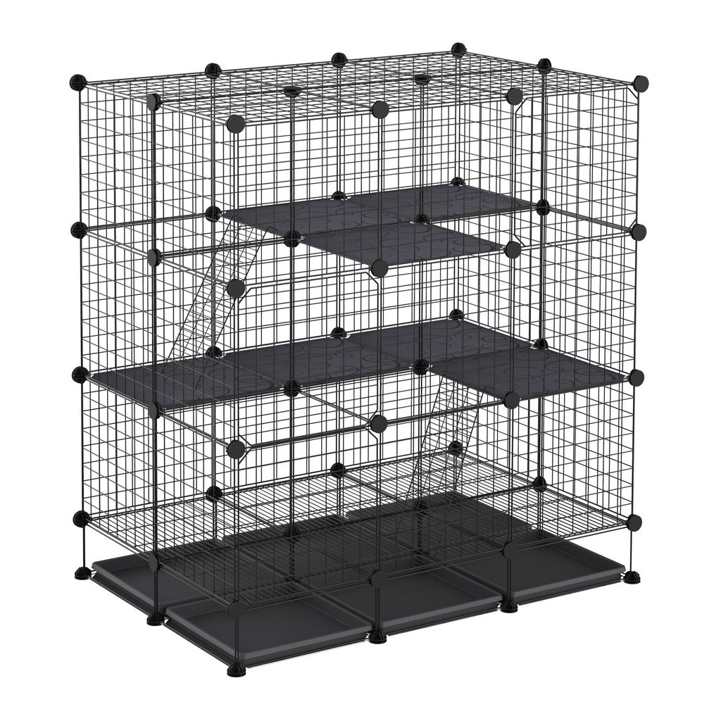 Cage parc enclos rongeurs modulable dim. L 111 x l 75 x H 119 cm 3 niveaux 4 portes fil métallique noir