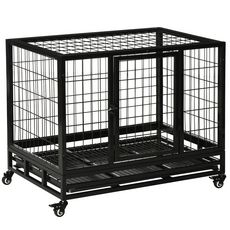 Cage pour chien animaux cage de transport sur roulettes 2 portes noir