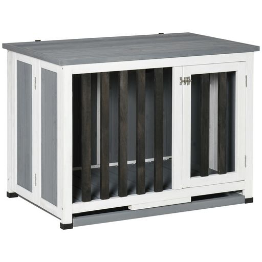 - Cage pour chien en bois de sapin peint en blanc, gris et noir