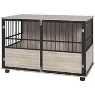 Cette splendide cage pour chien style industriel en acier noir et panneaux de particules aspect bois vous permettra de mêler l'utile à l'agréable ! Votre chien sera confortablement installé (cage grande taille, porte coulissante verrouillable) et vous disposerez d'un nouvel espace de décoration et r