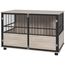 Cette splendide cage pour chien style industriel en acier noir et panneaux de particules aspect bois vous permettra de mêler l'utile à l'agréable ! Votre chien sera confortablement installé (cage grande taille, porte coulissante verrouillable) et vous disposerez d'un nouvel espace de décoration et rangement grâce à son plateau.
