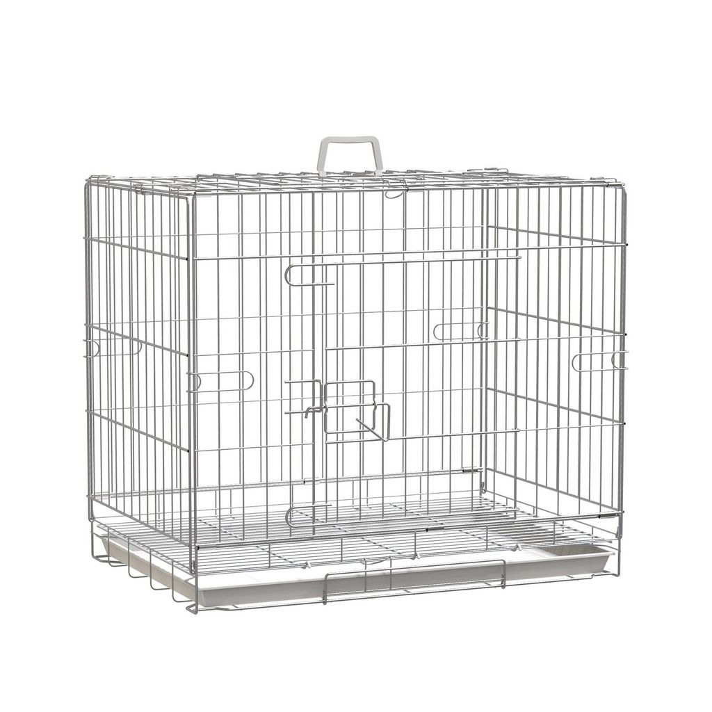Cage pour chien pliable - plateau excrément coulissant - 2 portes verrouillable, poignée - dim. 61L x 43l x 50H cm - fer galvanisé PP blanc