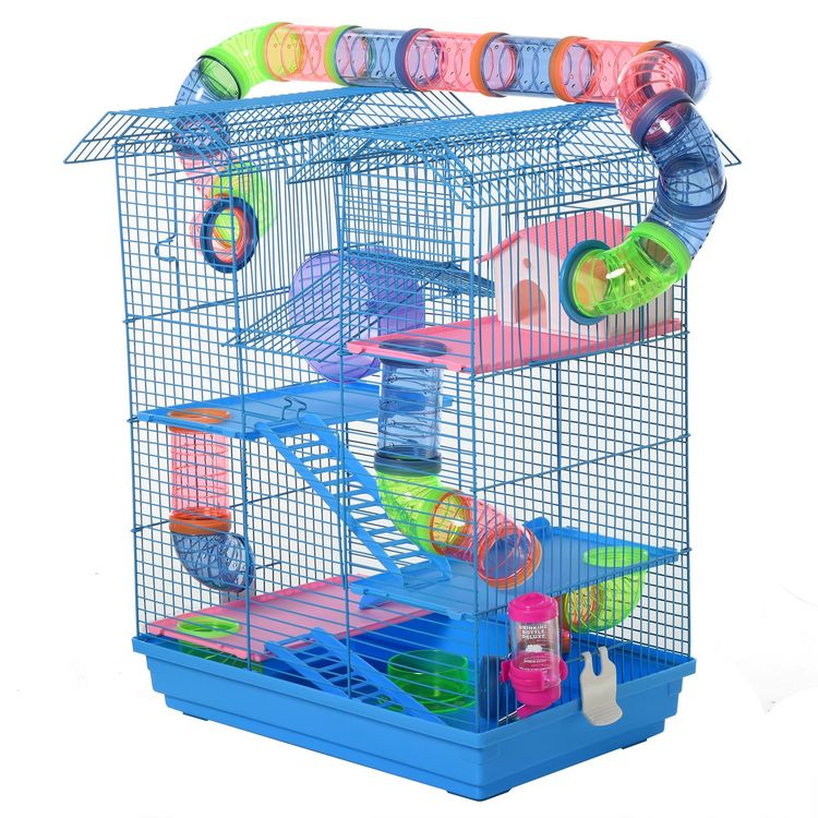 - Multi-équipements de jeu pour vos hanmsters, cage avec maisonnette, échelle, bouteille d'eau, mangeoir, roue d'exercice, etc...