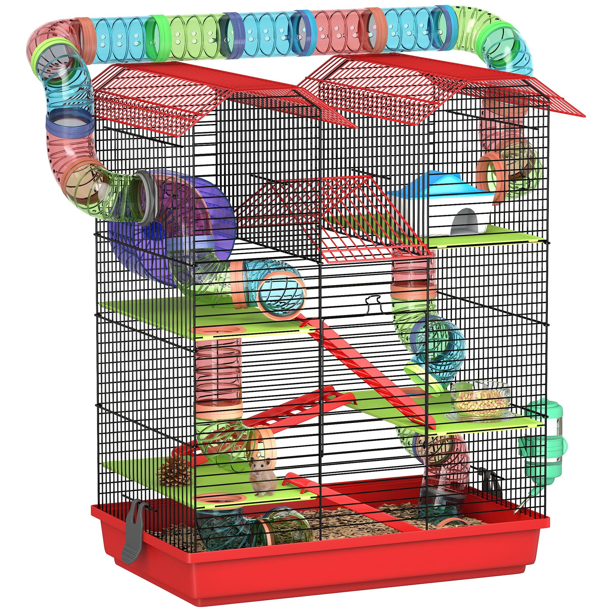 - Multi-équipements de jeu pour vos hanmsters, cage avec maisonnette, échelle, bouteille d'eau, mangeoir, roue d'exercice, etc...