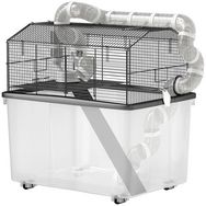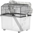 Cage pour hamster sur roulettes - cage à rongeur 2 portes - accessoires multiples - acier noir PP transparent