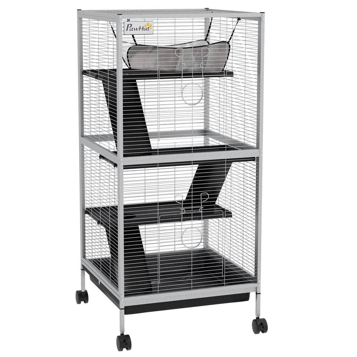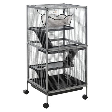 La cage pour petits animaux est idéale pour les petits animaux. 4 roues universelles permettent un déplacement et un transport faciles et offre également un peu plus de hauteur pour la vue de votre animal. Il y a 2 grandes portes pour un accès facile à votre animal. Un plateau amovible pour un nettoyage facile avec une rampe et une plate-forme pour compléter cette cage.