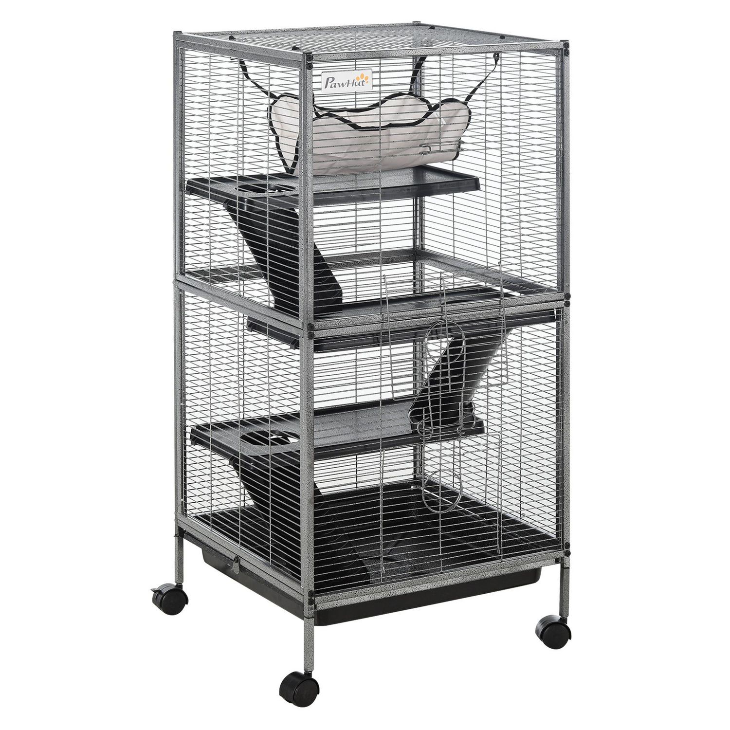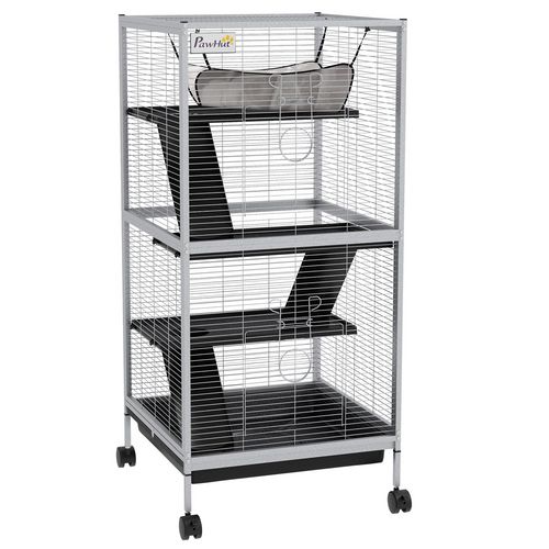 Cage pour petits animaux portable avec 2 portes hamac métal PP 52 x 52 x 113,5 cm