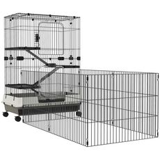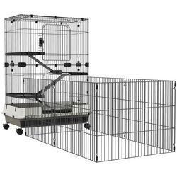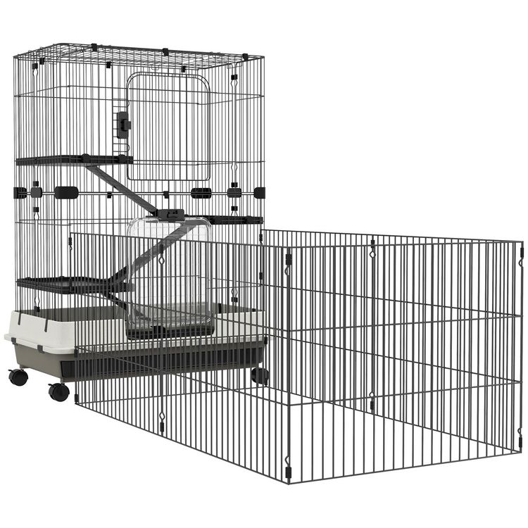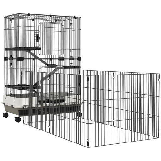 Cage pour petits animaux roulante 3 plates-formes démontables 3 rampes plateau inférieur amovible métal PP 182 x 81 x 114 cm noir