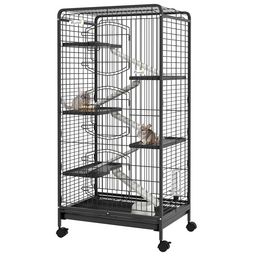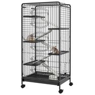 Cage pour petits animaux roulante 5 rampes 5 plateformes gamelle distributeur eau plateau amovible métal PP noir