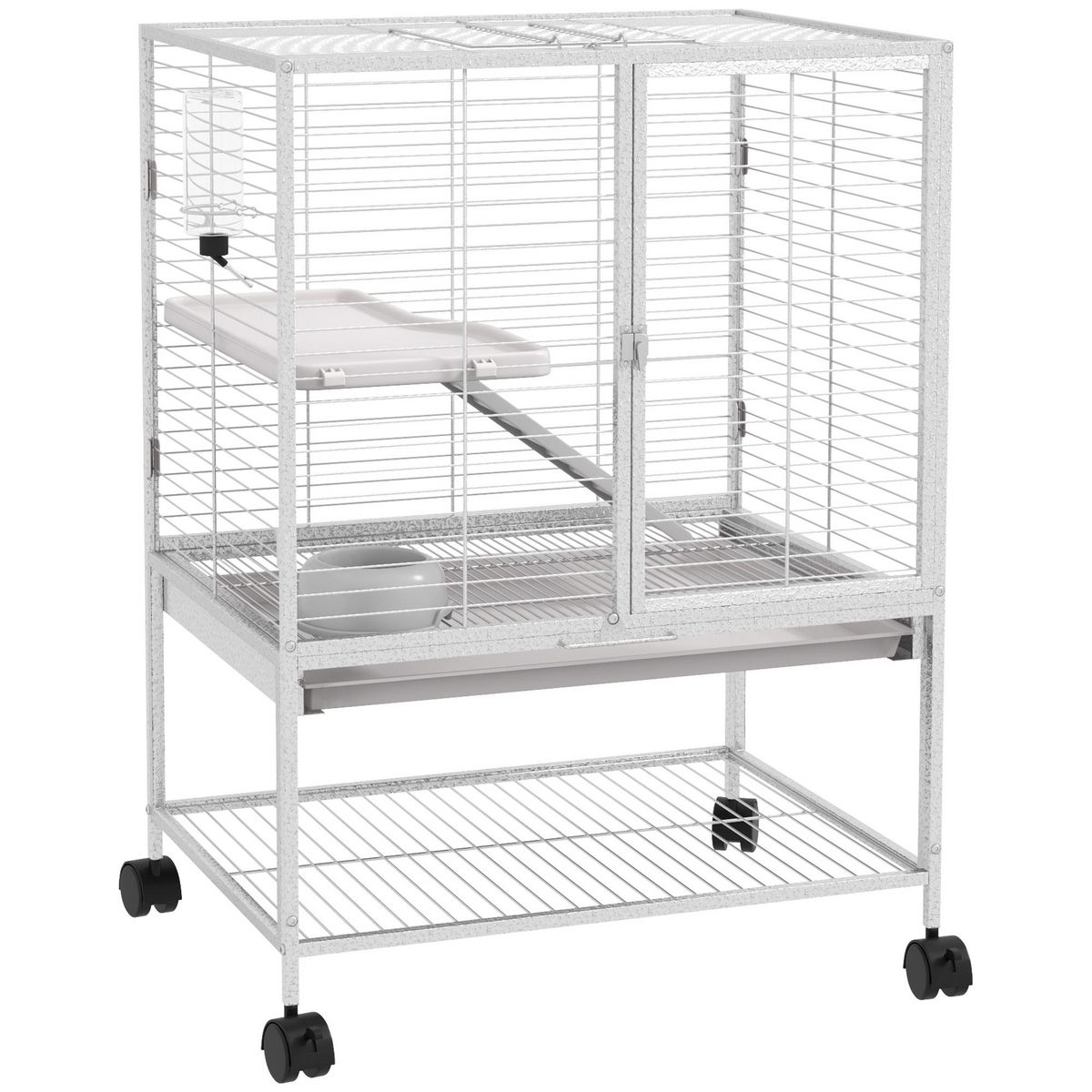 Cage pour rongeurs furet chinchilla plateforme rampe 2 portes biberon gamelle plateau étagère acier gris clair
