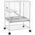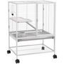 - Cage montée sur 4 roulettes pivotantes à 360° dont 2 équipées de frein : déplacement pratique si besoin