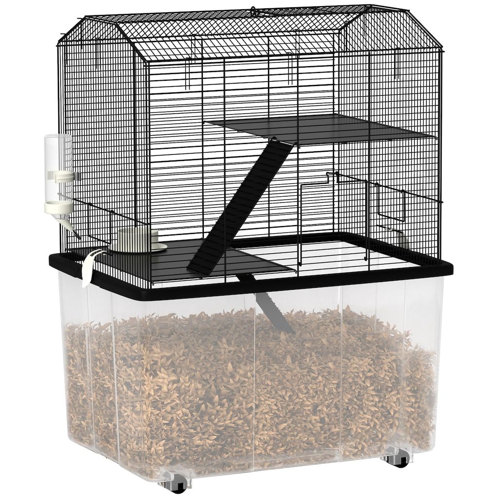 Découvrez la joie d'un animal de compagnie heureux et actif avec la cage pour hamster PawHut, une délicieuse maison dotée de deux plates-formes et de deux rampes pour des ébats sans fin. Cette cage pour cochon d'inde est doté d'une mangeoire et une bouteille d'eau pour que votre ami à fourrure soit