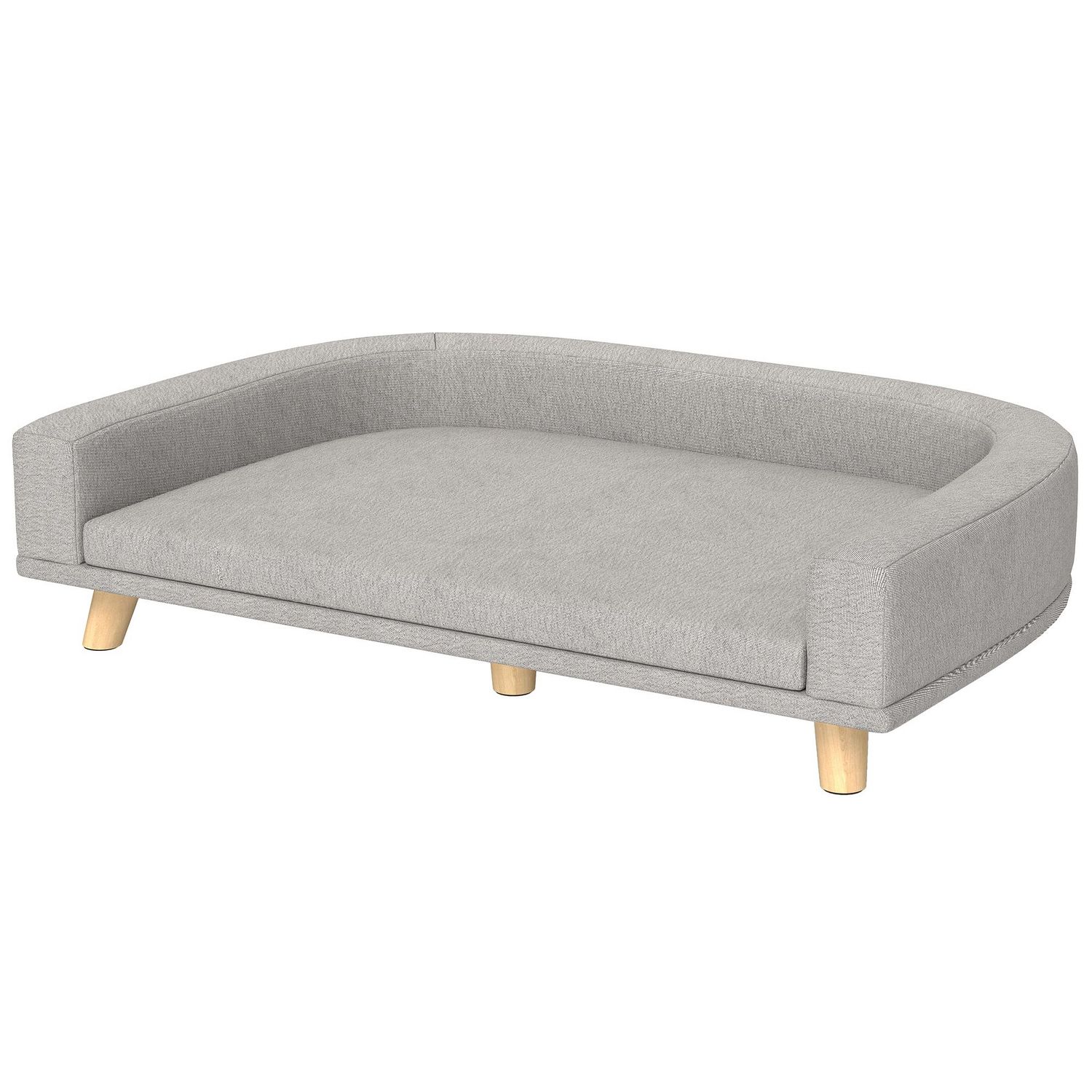 Canapé chien lit pour chien design scandinave coussin déhoussable dim 98L x 67l x 25H cm pieds bois tissu polyester gris