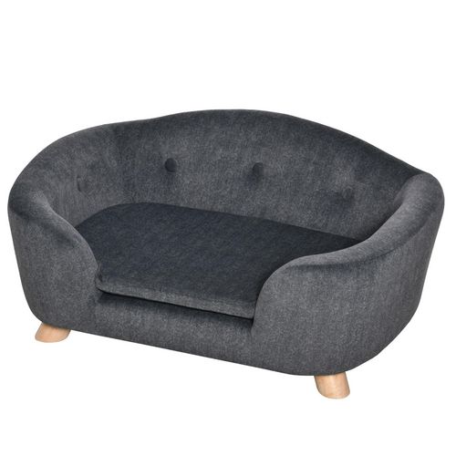 Canapé chien lit pour chien design scandinave coussin moelleux amovible pieds bois massif dim. 70L x 47l x 30H cm peluche courte polyester gris