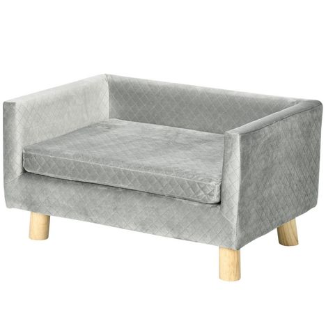 Canapé chien lit pour chien design scandinave coussin moelleux pieds bois massif dim. 64 x 45 x 36 cm velours gris