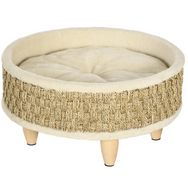 Canapé panier lit chien chat style cosy naturel - coussin inclus - dim. Ø 48 x 24,5H cm - bois pin jonc de mer