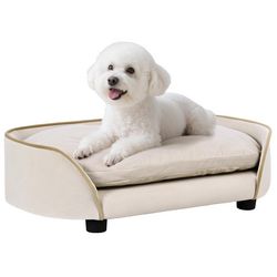 Canapé pour chien, canapé pour animal de compagnie avec coussin amovible et housse lavable, en velours, 66 x 43 x 19,5 cm, beige