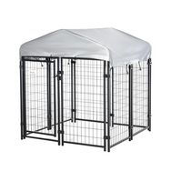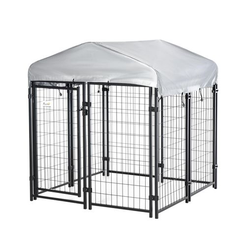 Chenil cage enclos chien entièrement couvert - porte verrouillable - 120 x 120 x 138cm - gris métal noir