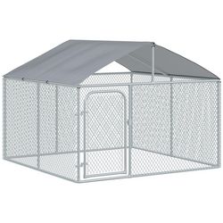 Chenil extérieur avec toit pour chien 5 m² - parc grillagé 230 x 230 x 175 cm - espace couvert - acier galvanisé