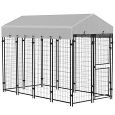 Ce chenil PawHut d'extérieur en acier pour chiens ou autres animaux permettra à votre animal de profiter d'un bel espace clos sécurisé et abrité. Composé de panneaux préassemblés solides et résistants en acier inoxydable. L'ensemble est recouvert d'une bâche épaisse et imperméable qui gardera votre animal au sec à l'abri des intempéries ou du soleil.