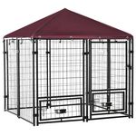 Chenil extérieur chien - cage chien - enclos chien - toile toit imperméable anti-UV, porte verrouillable, 2 bols rotatifs - acier noir oxford pourpre