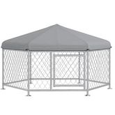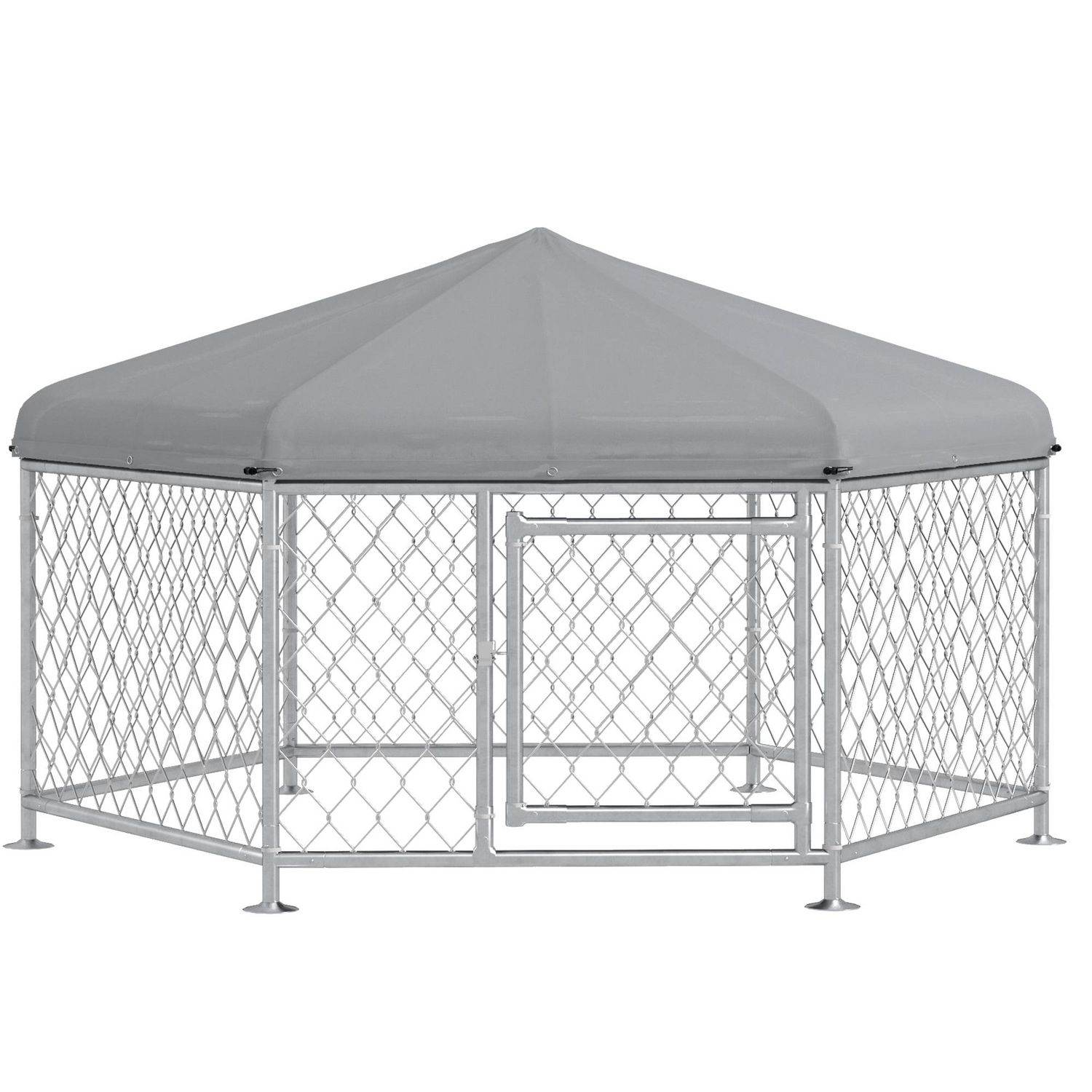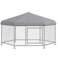 Chenil pour chien entièrement couvert - enclos chien - dim. 210L x 185l x 120H cm - porte verrouillable - acier galvanisé gris