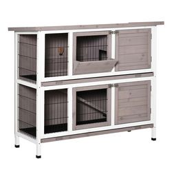 - Clapier à lapin sur pied 2 niveaux bicolore gris blanc très élégant