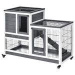 Clapier à lapin sur roulettes cage à lapin 2 étages 2 portes verrouillables 2 plateaux coulissants rampe bois de sapin gris blanc