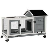 Clapier à lapin sur roulettes cage à lapin porte, rampe trappe verrouillables toit ouvrant niche bois sapin acier gris blanc