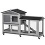 Clapier bois sur roulettes 2 niv. 3 plateaux déjections coulissants sapin gris pré-huilé