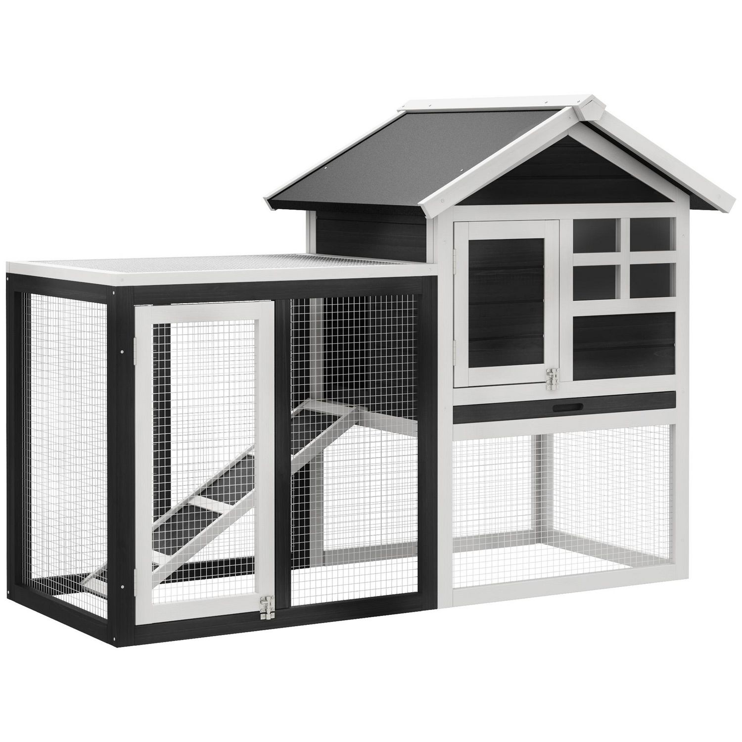 - Clapier cage à lapins haut de gamme style cottage doté d'une niche surélevée avec toit bitumé : imperméabilité et protection face aux oiseaux, insectes, etc.