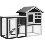 Clapier cage à lapins multi-équipé : niche supérieure avec rampe, plateau excrément, fenêtre + enclos extérieur sécurisé 2 portes 122L x 63l x 92H cm gris