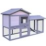 Clapier cage à lapins rongeurs 2 niveaux 3 portes verrouillables tiroir à déjection toit intégral bitumé 147L x 54l x 84H cm bois massif pin gris blanc