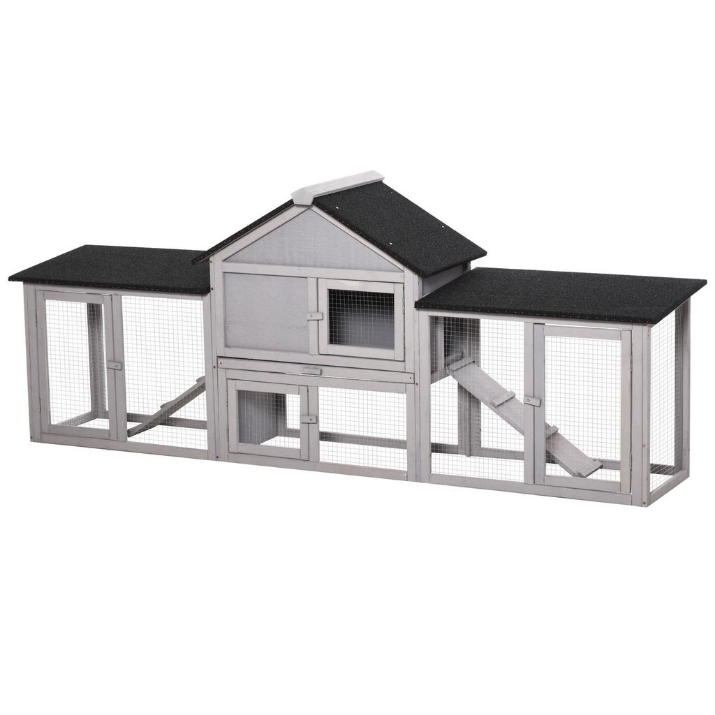 - Offrez un grand espace de vie pour le plus grand confort de vos lapins : espace fermé à l'étage pour être à l'abri de la pluie, du vent, de l'humidité + 2 aires de jeu spacieuses grillâgées avec rampes d'accès niveau supérieur