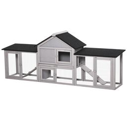 Clapier cage à lapins rongeurs XXL 2 étages toit bitumé intégral tiroir déjection 2,10L x 0,46l x 0,85H m bois pin pré-huilé gris